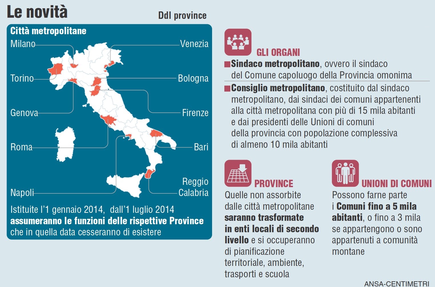 E’ solo nel 2014 che si conclude un travagliato processo istitutivo delle Città metropolitane, enti territoriali inseriti in Costituzione sono nel 2000 (riforma del Titolo V), ma già previsti dalla legge 142/1990. Fino ad oggi il tema non è stato affrontato al meglio, e una lunga serie di tentativi (da Prodi a Letta) ha prodotto qualche piccolo passo, utile ad arrivare fino al traguardo tagliato con il “ddl Delrio”, che accompagna allo scioglimento de facto delle vecchie Province l’istituzione delle Città metropolitane. “E allora cosa cambia?” ci si chiede giustamente, dubbiosi che rientri dalla finestra quel che, con fatica, si è cacciato fuori dalla porta.